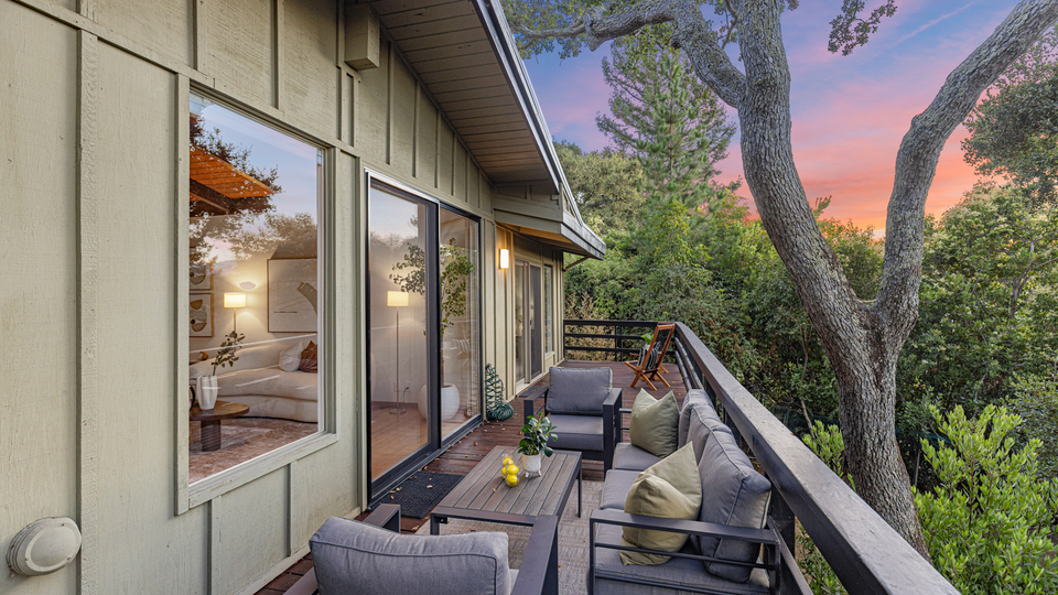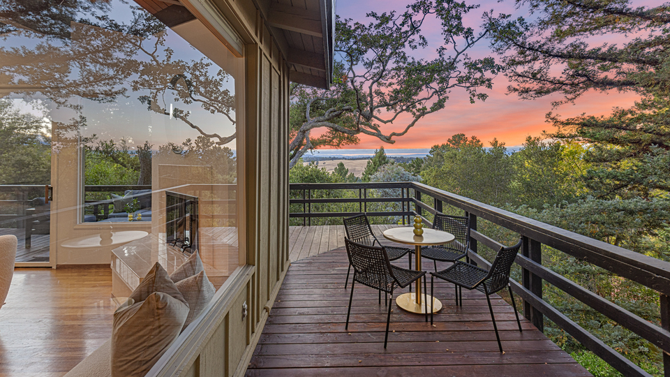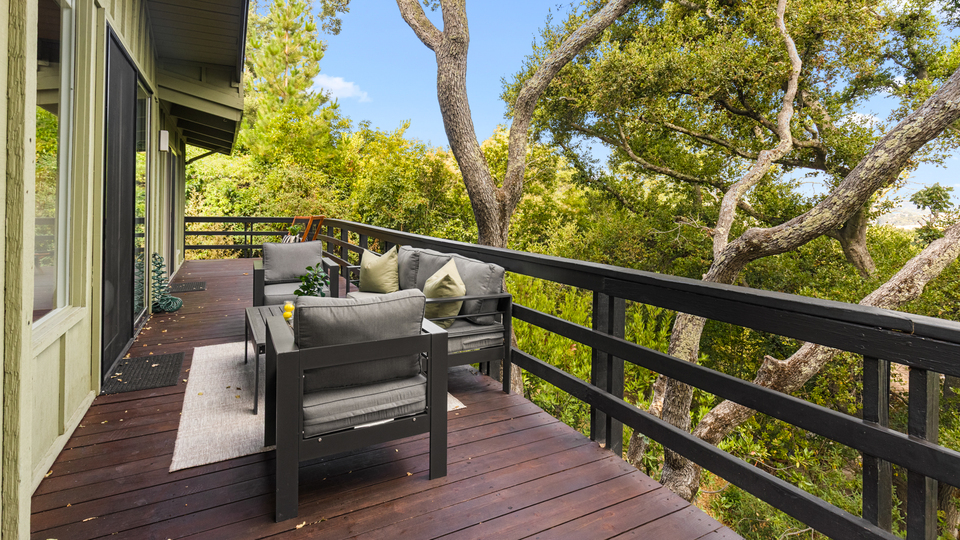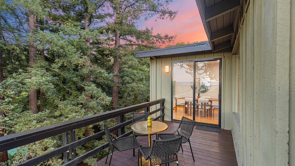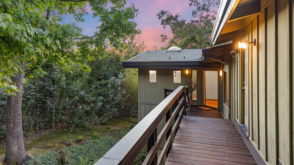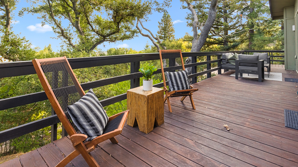 Located in the sought-after neighborhood of Ladera in Portola Valley, this spacious and comfortable home has breathtaking views of the San Francisco Bay and surrounding treetops, plus a separate 1BD/1BA apartment with kitchenette and private entrance.