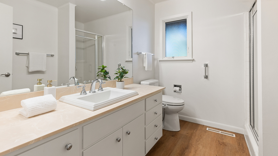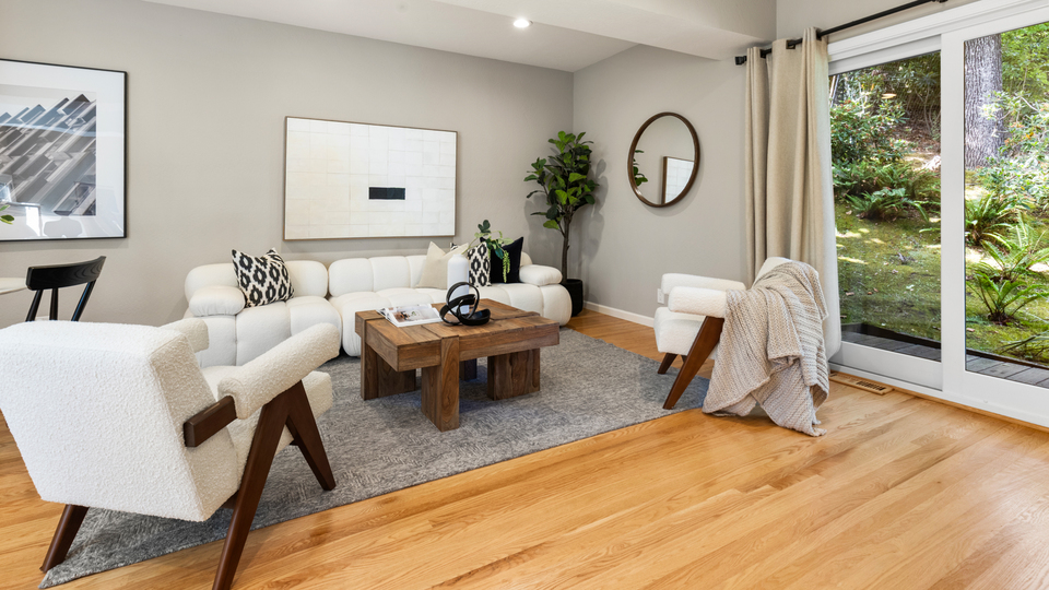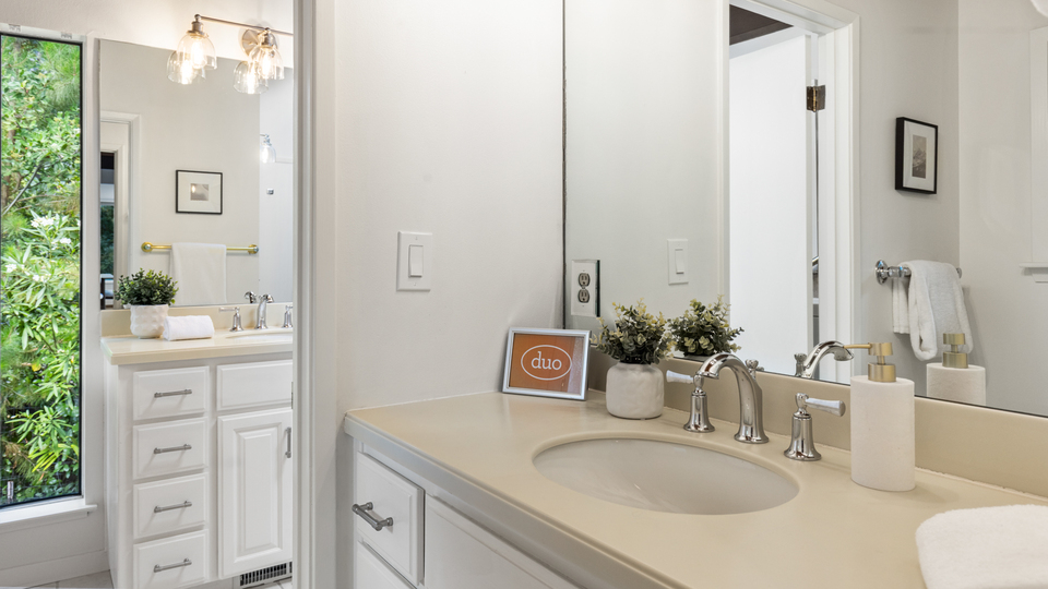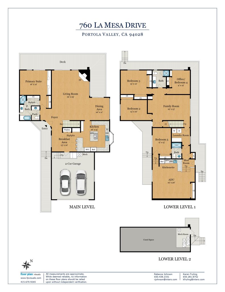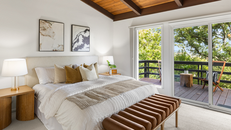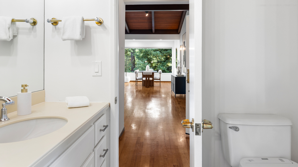 Located in the sought-after neighborhood of Ladera in Portola Valley, this spacious and comfortable home has breathtaking views of the San Francisco Bay and surrounding treetops, plus a separate 1BD/1BA apartment with kitchenette and private entrance.